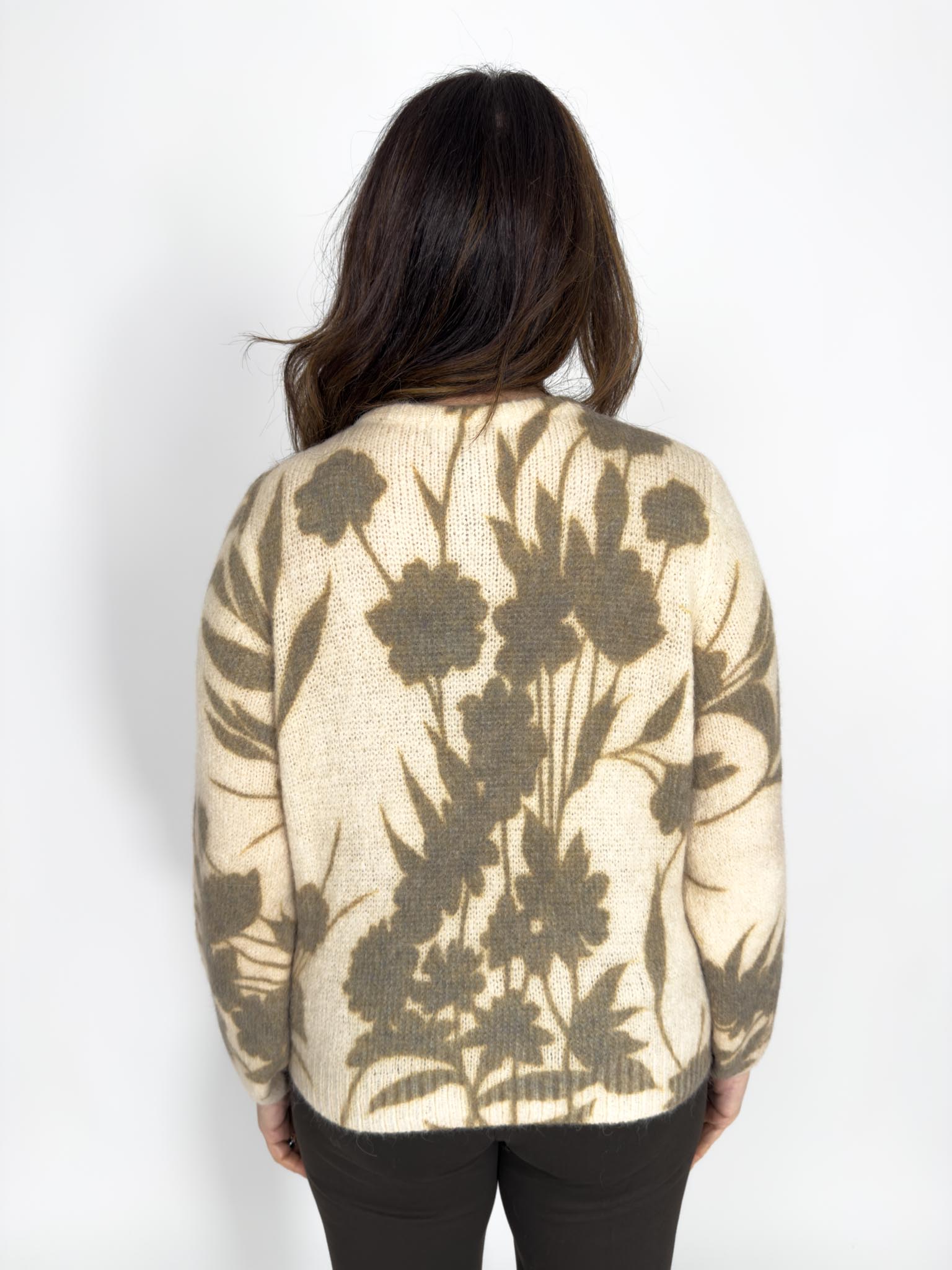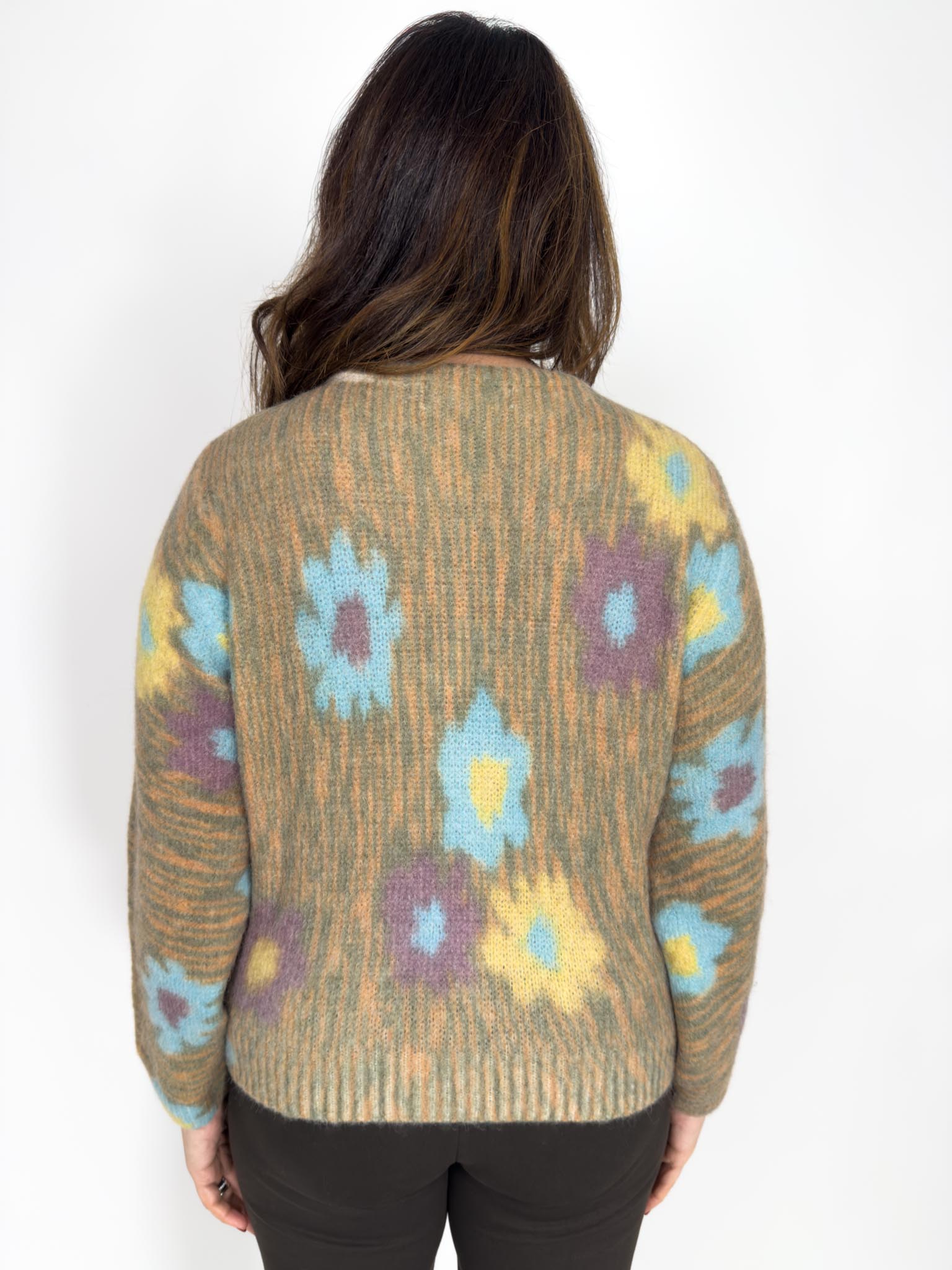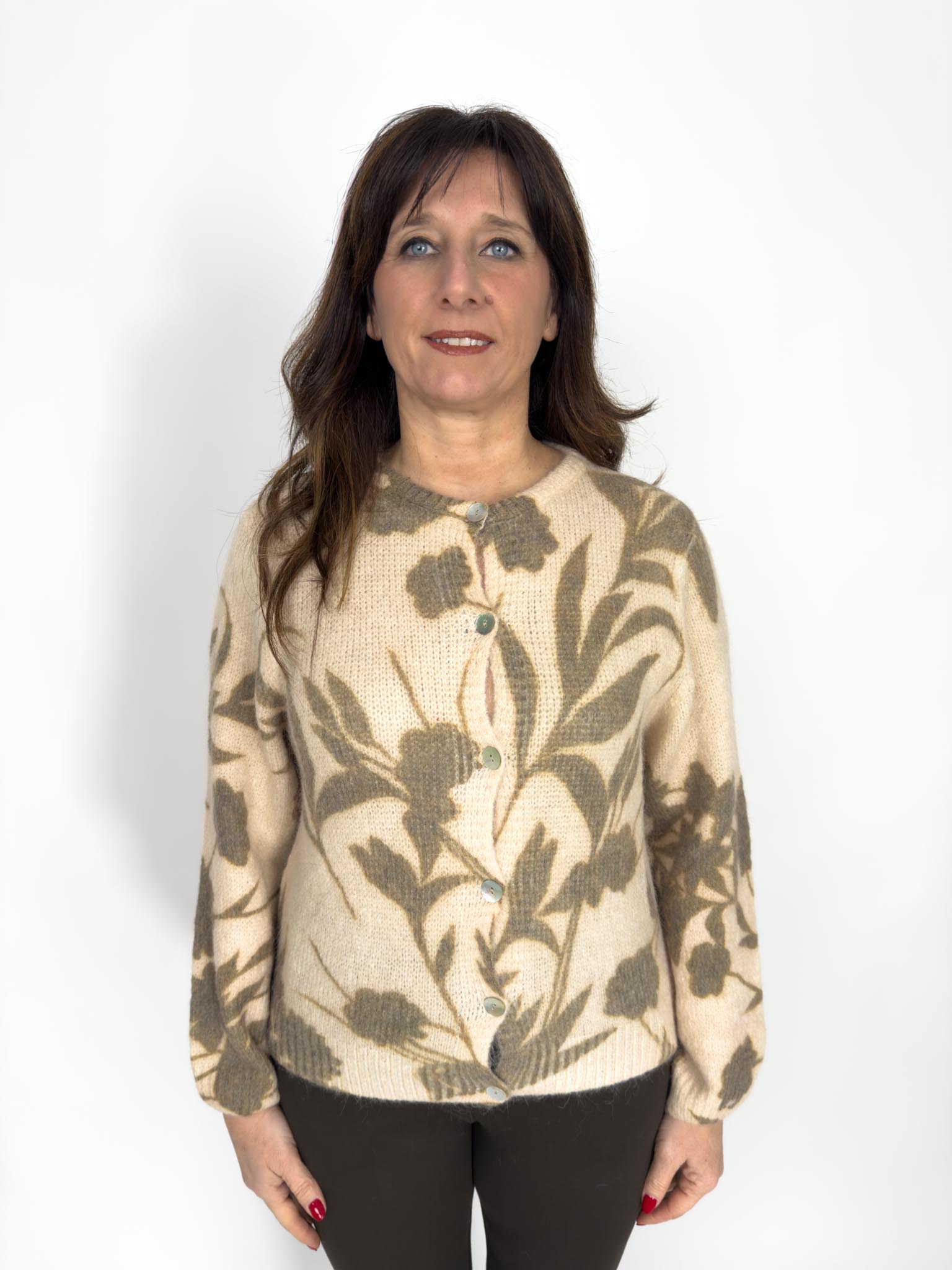Cardigan girocollo fantasia fiore in lana e alpaca.