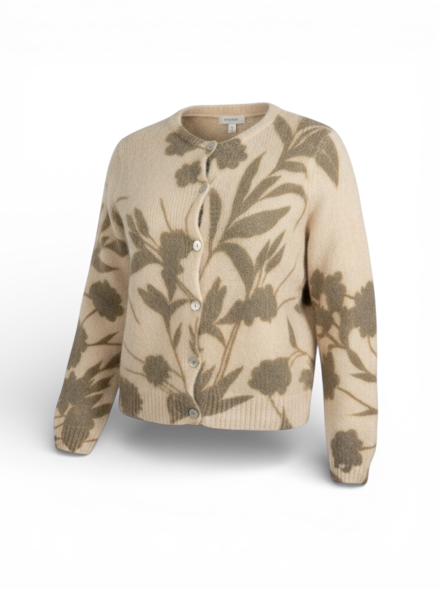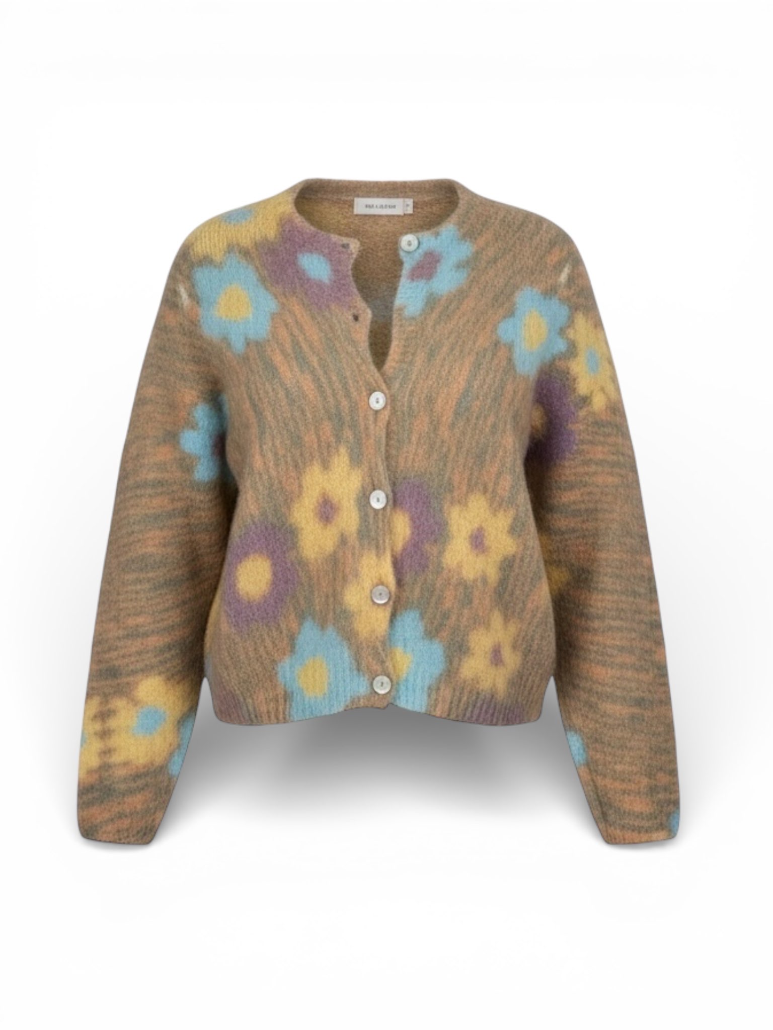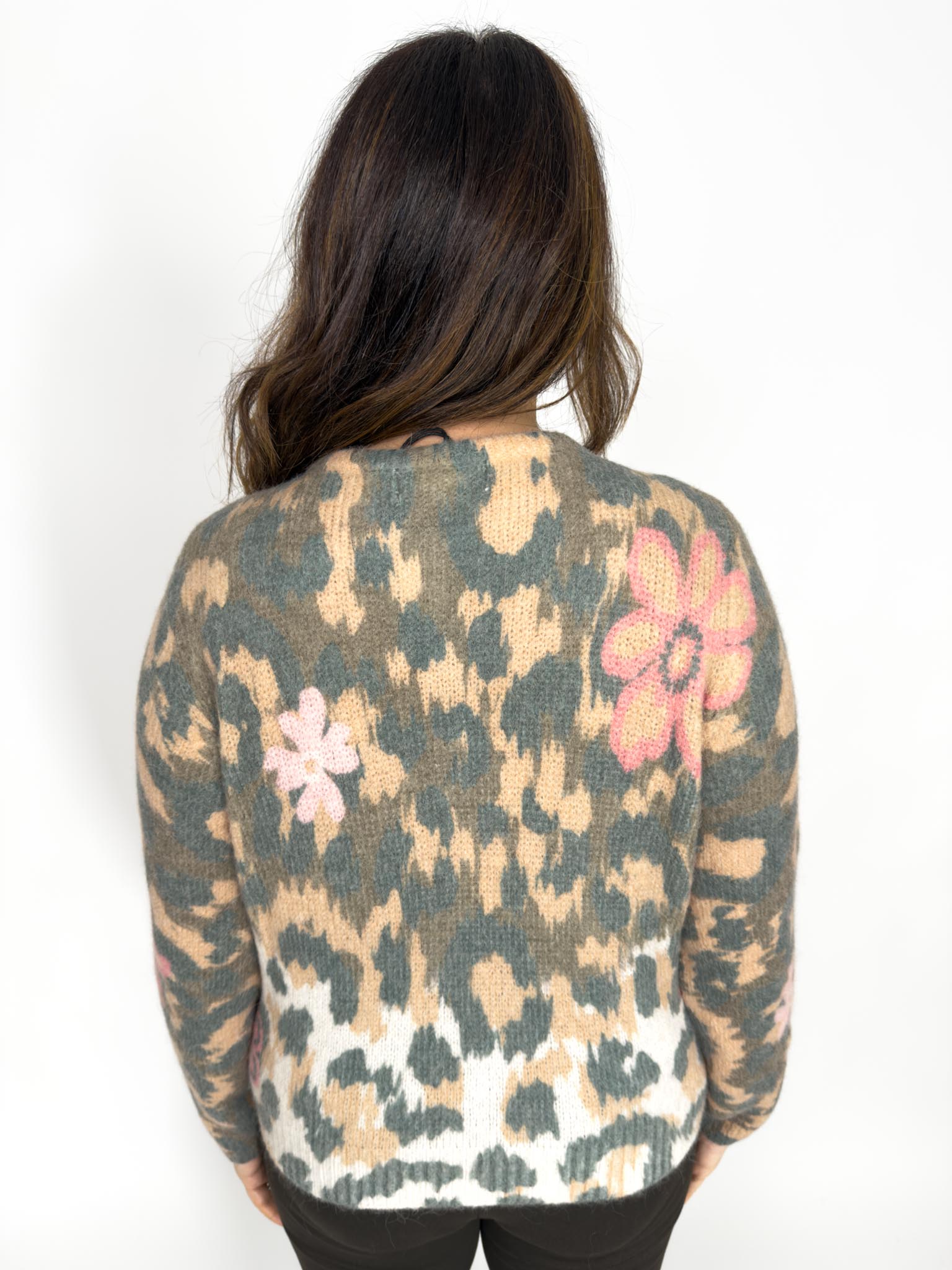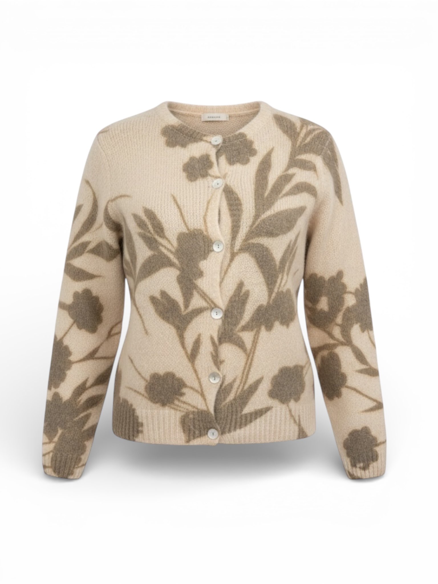 Cardigan girocollo fantasia fiore in lana e alpaca.