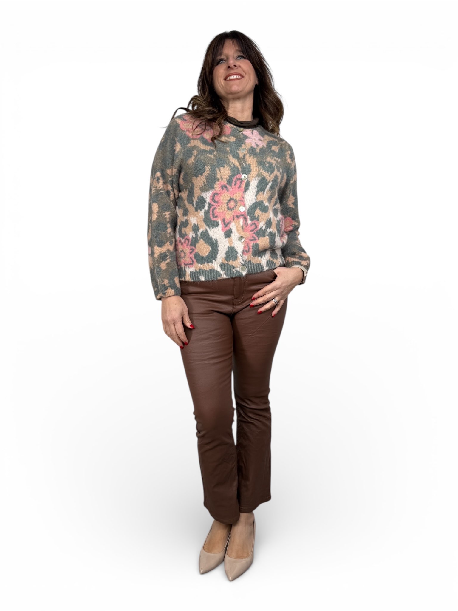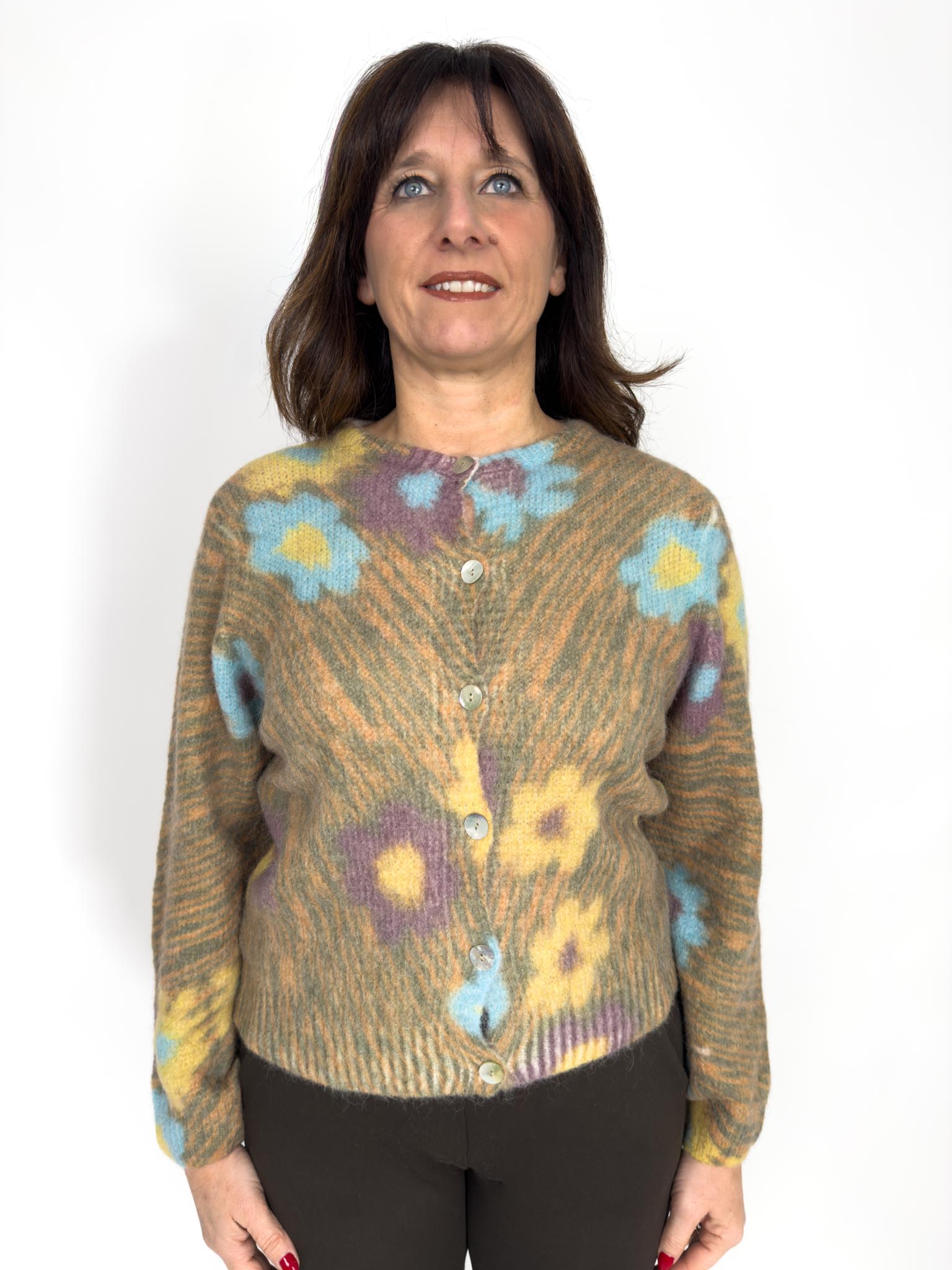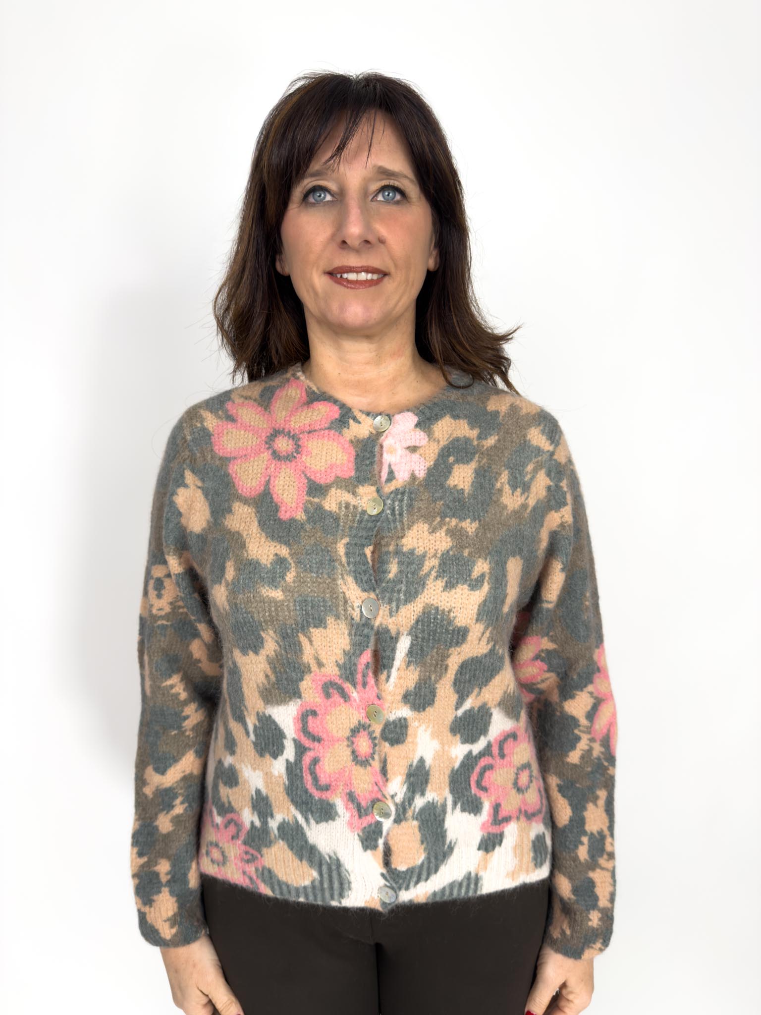 Cardigan girocollo a fantasia
