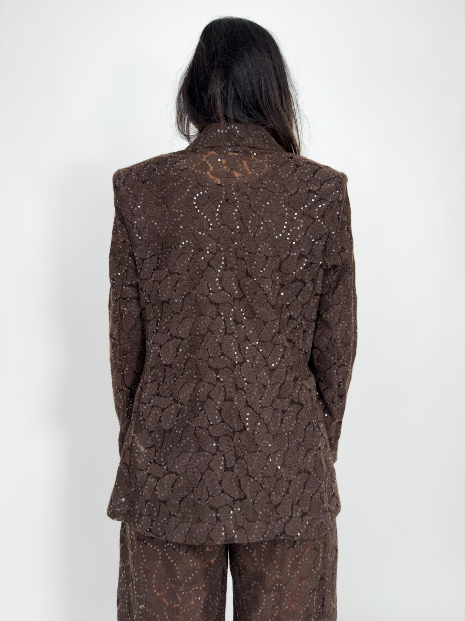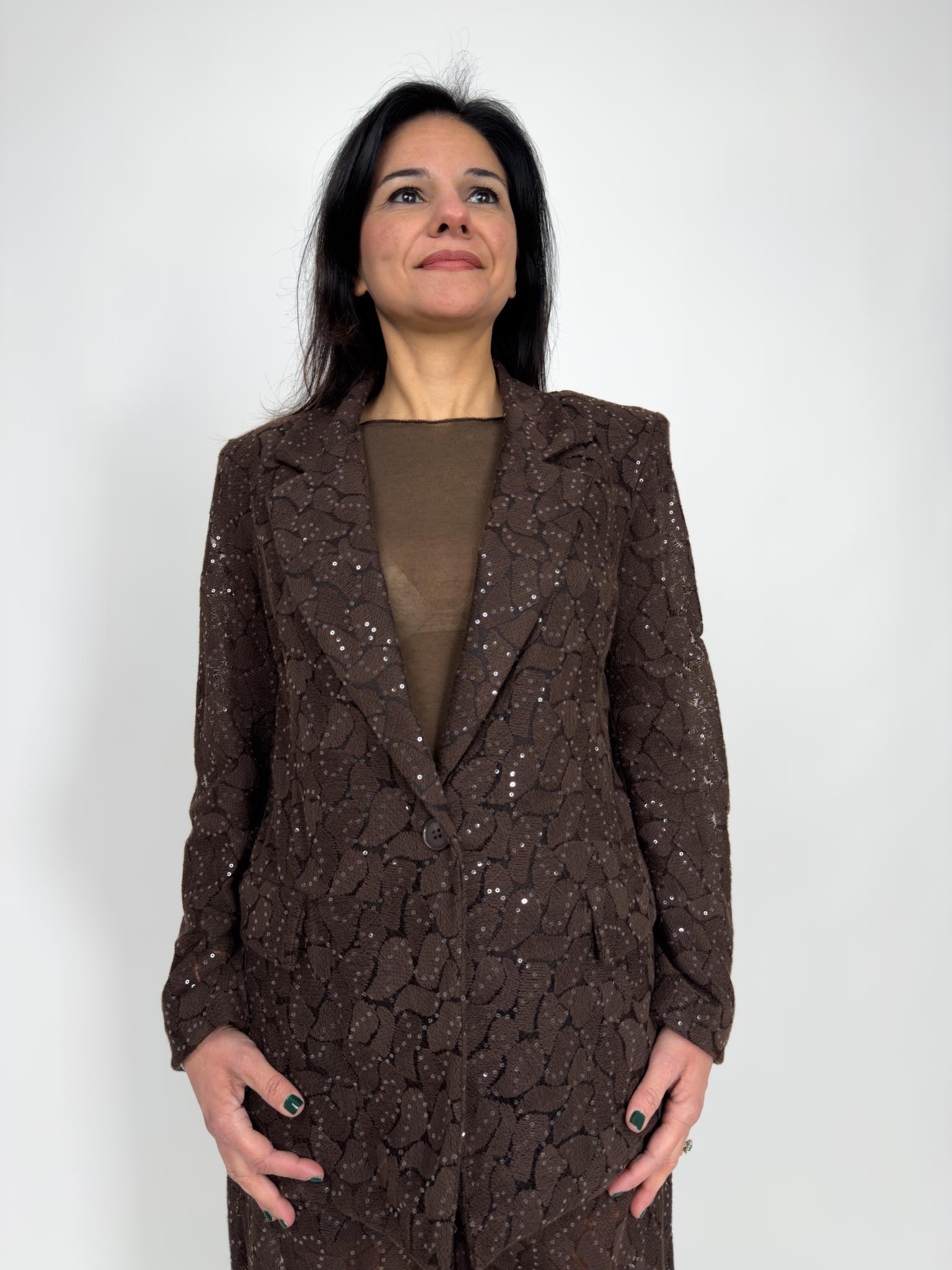 Giacca in tulle ricamato con paillettes, sfoderata con spalline.