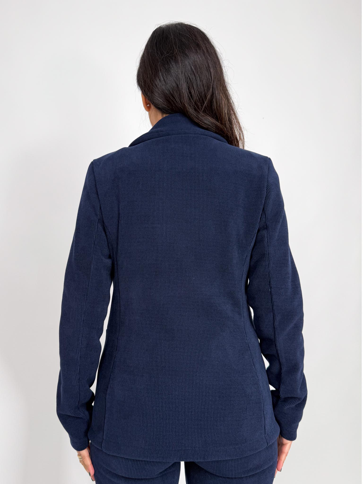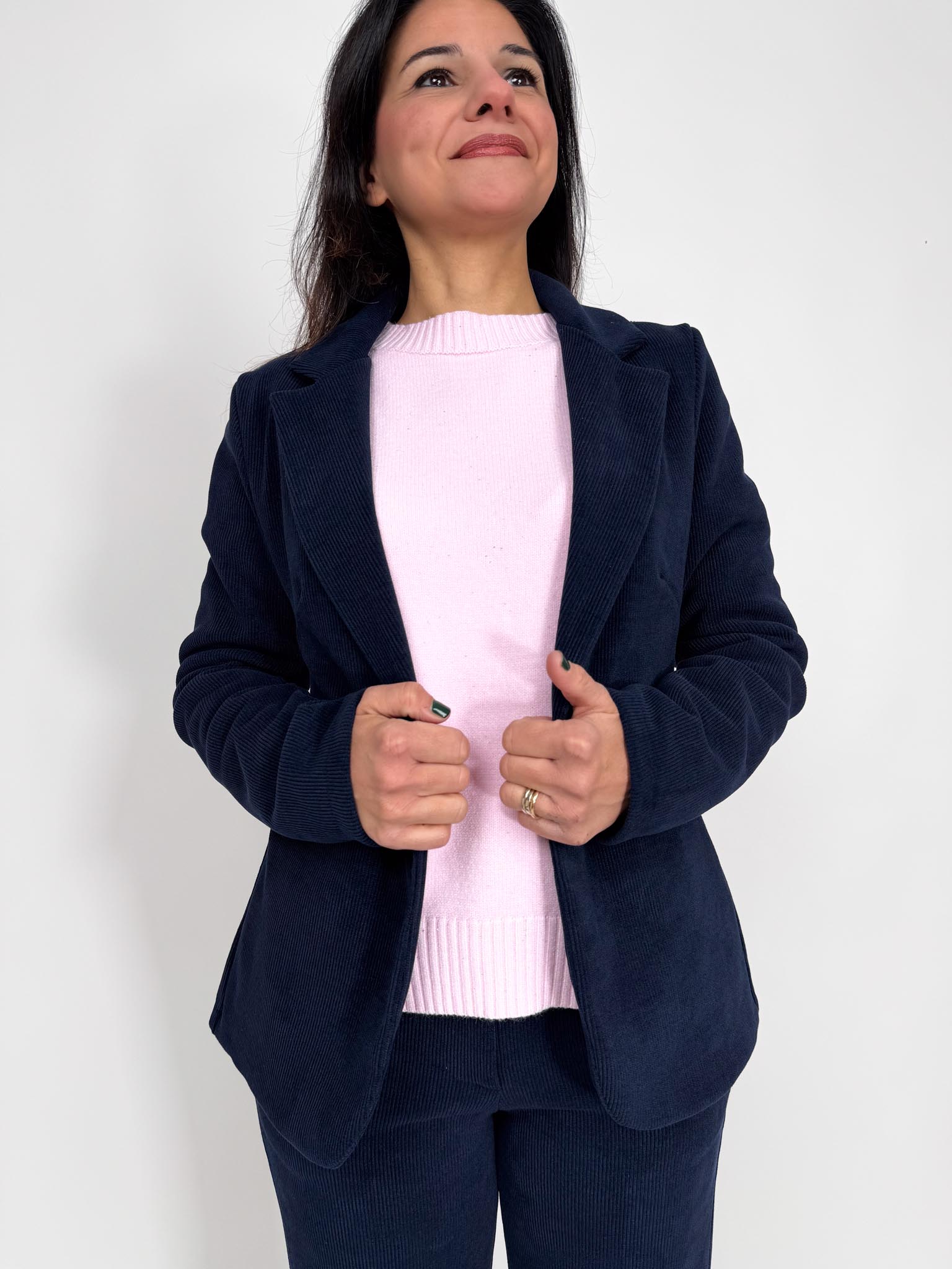 Giacca slim in velluto a coste, monopetto con doppio bottone, bavero a lancia