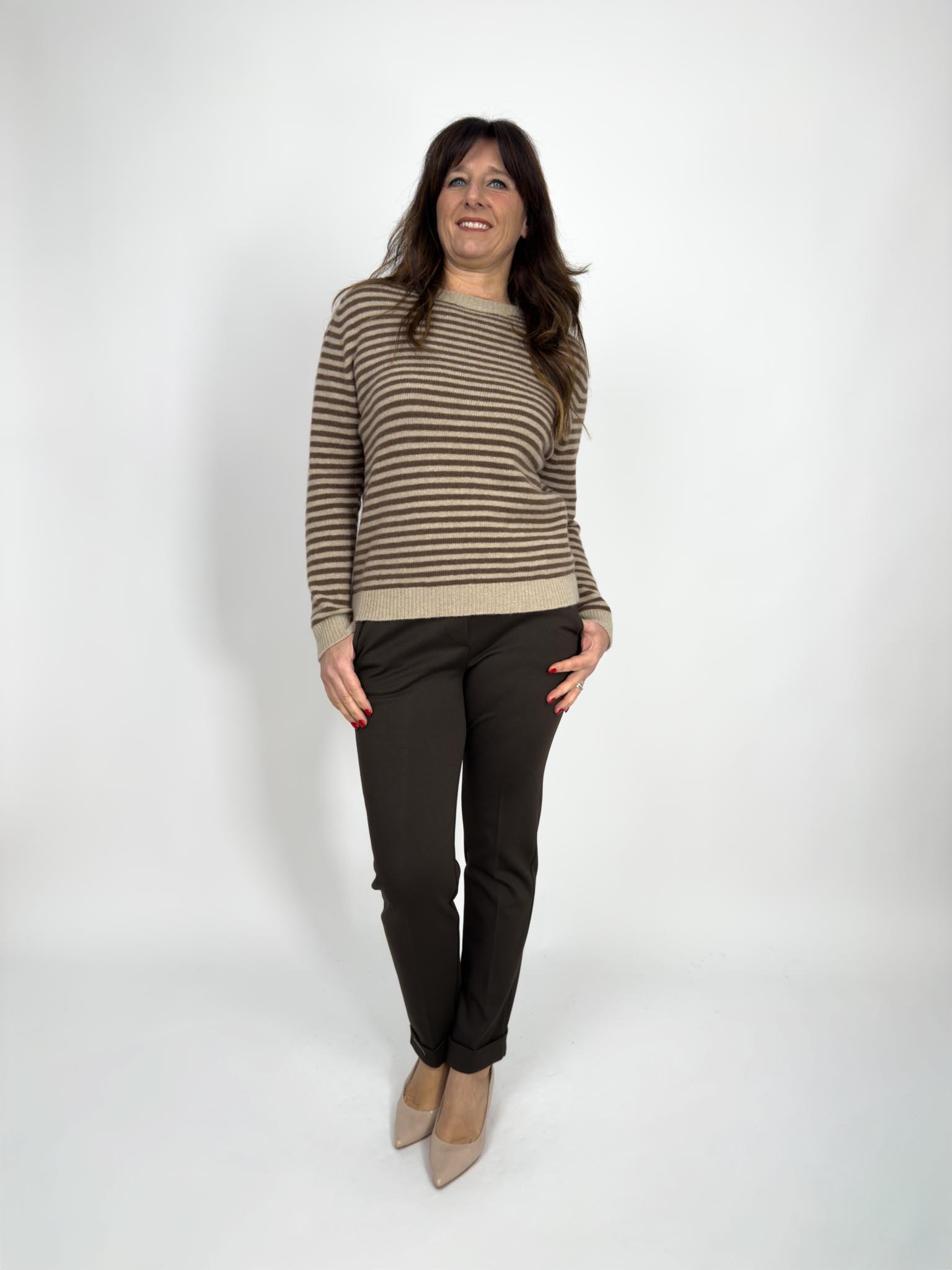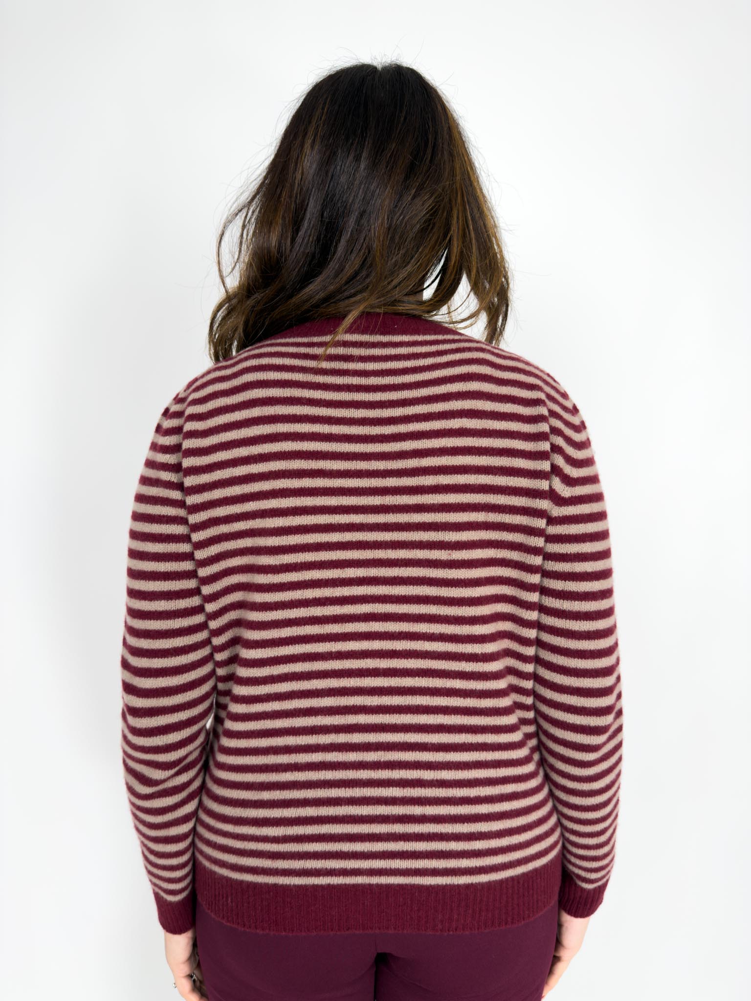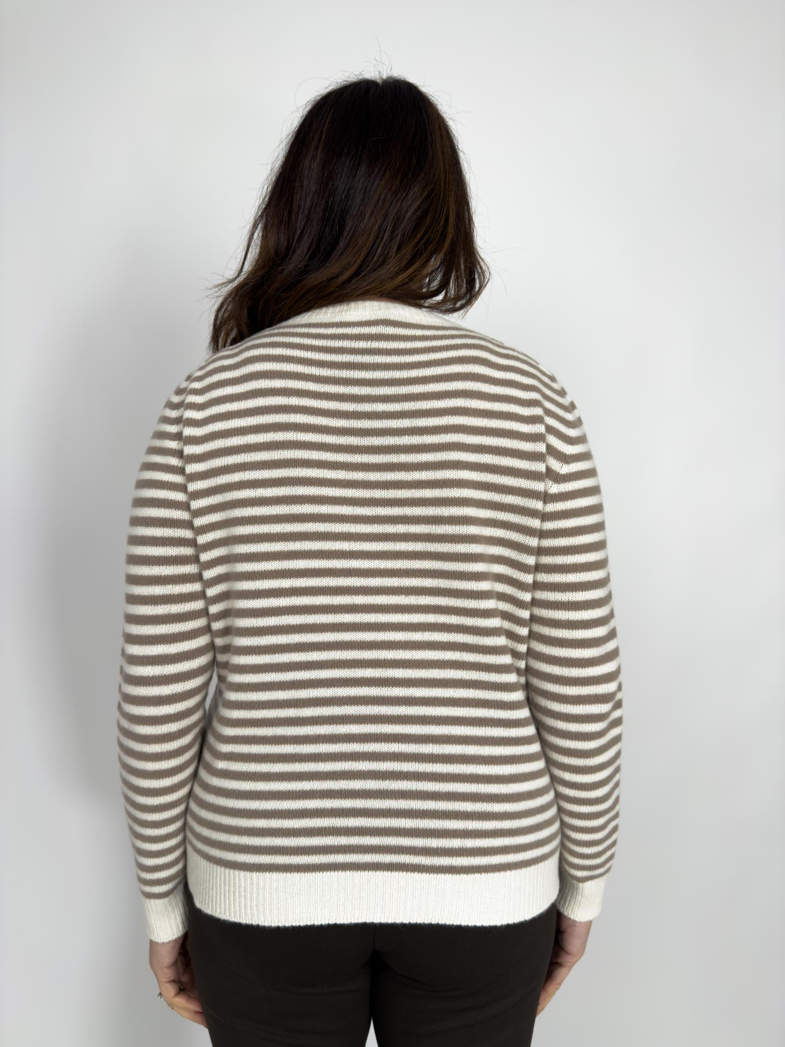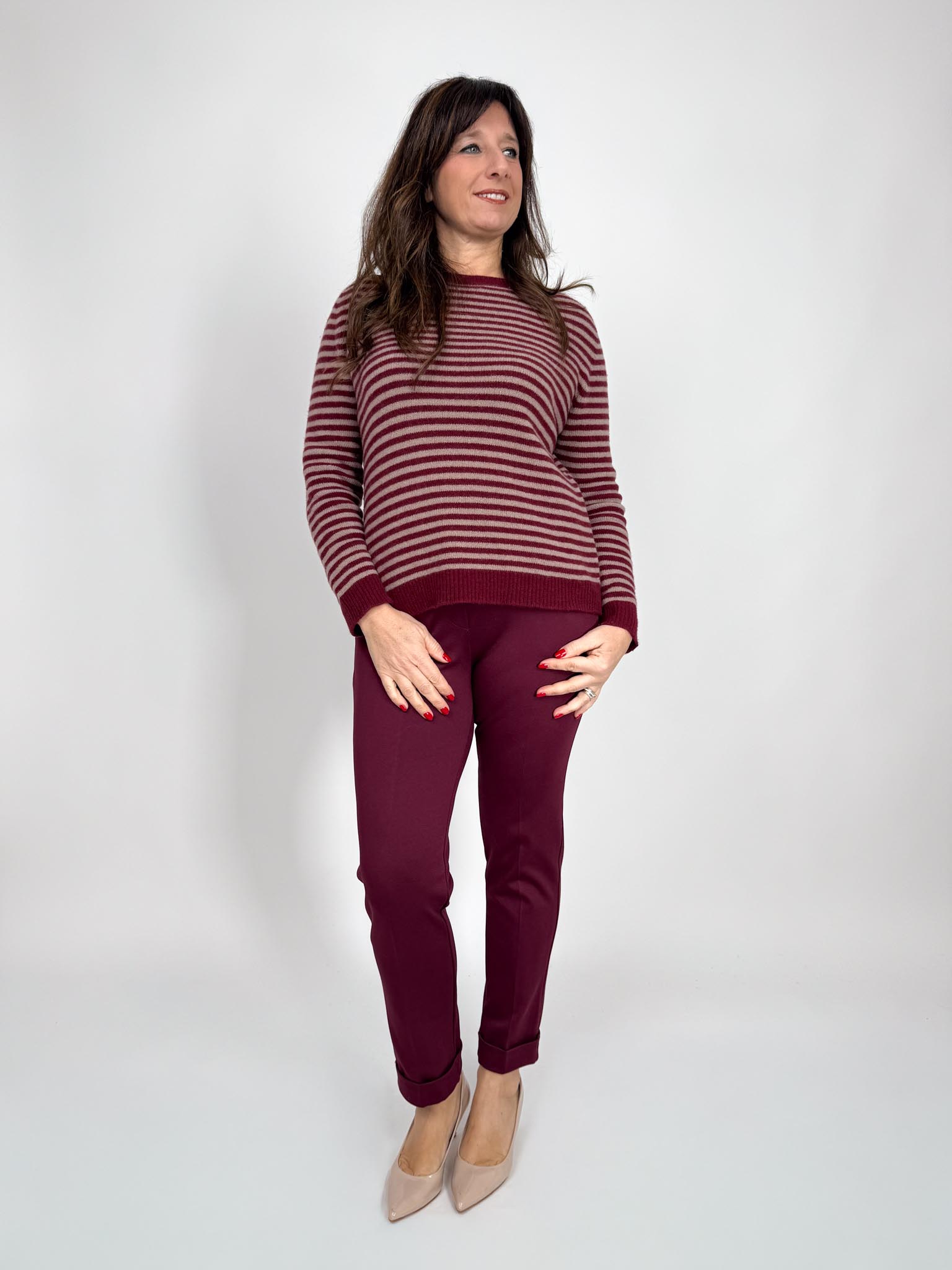 Maglia in lana Made in Italy, paricollo con linee orizzontali.