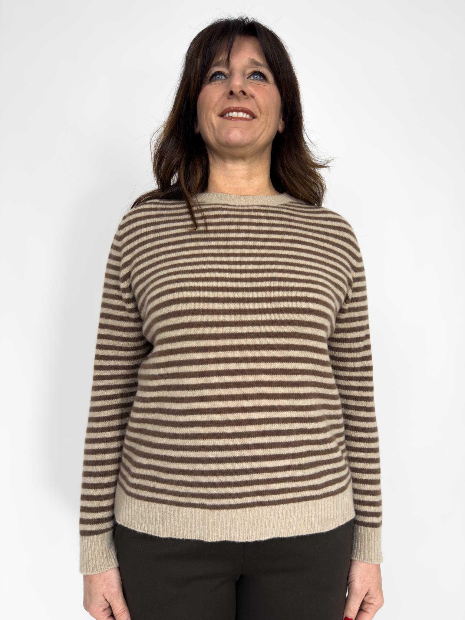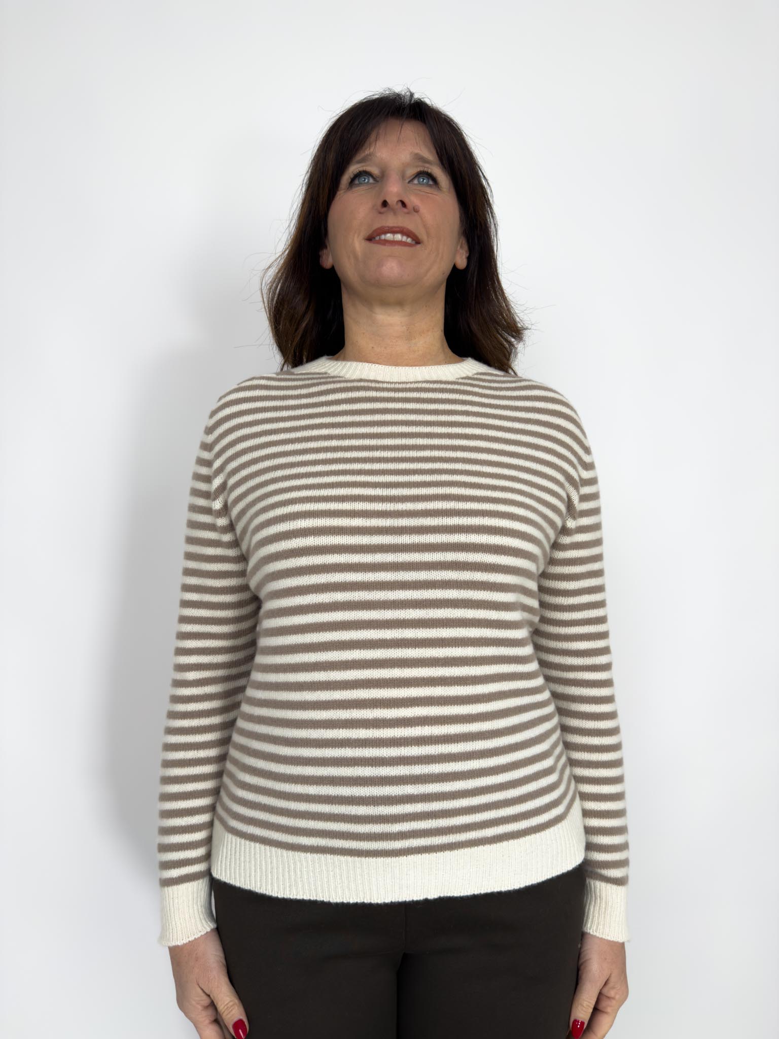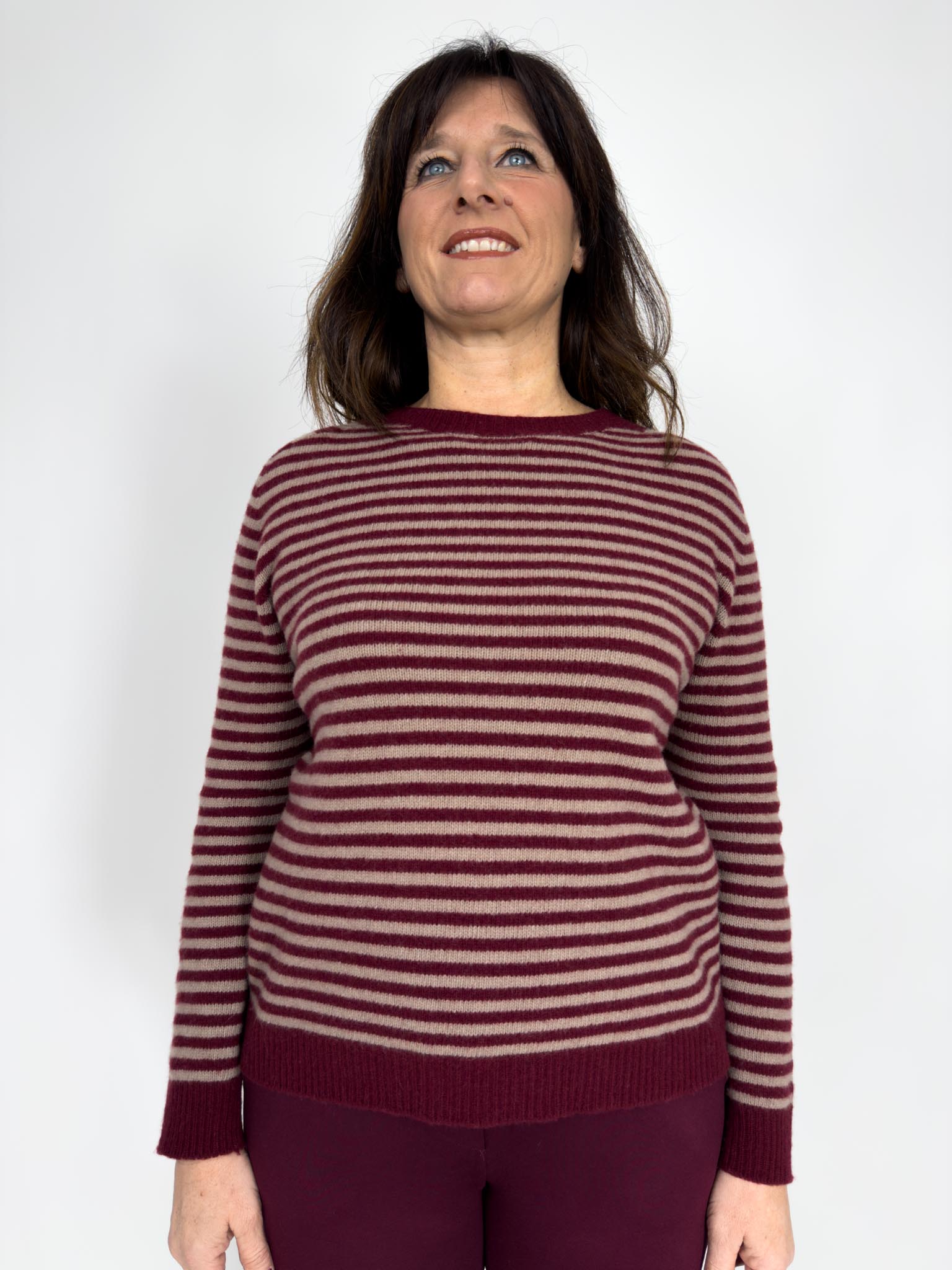 Maglia in lana Made in Italy, paricollo con linee orizzontali.