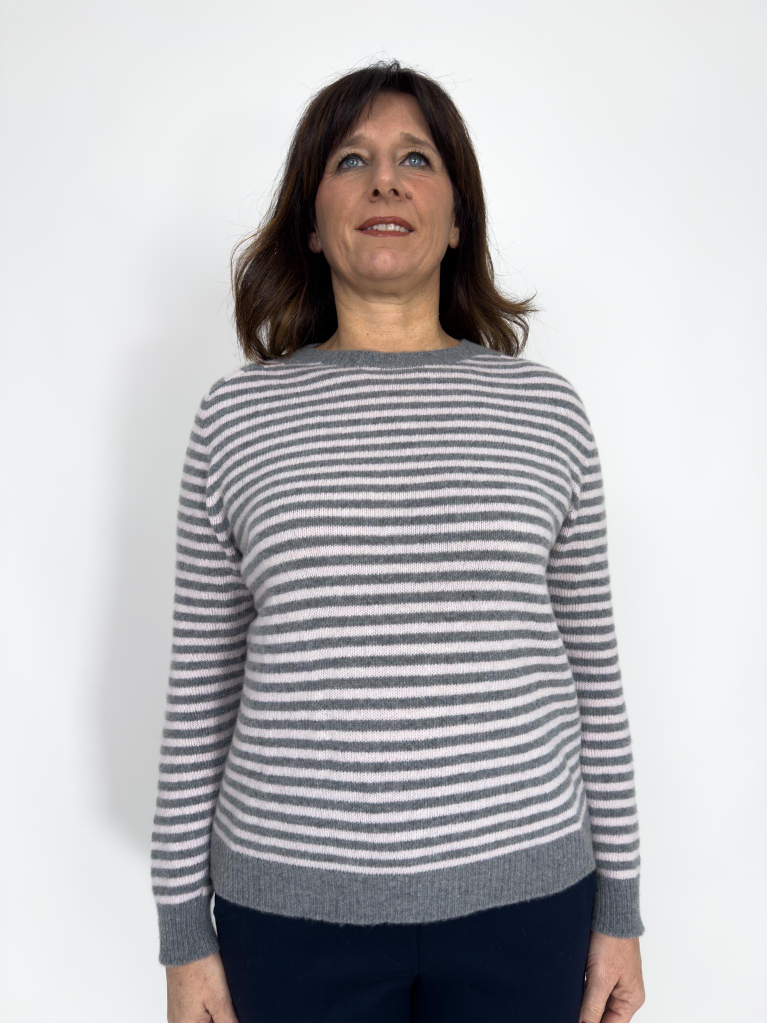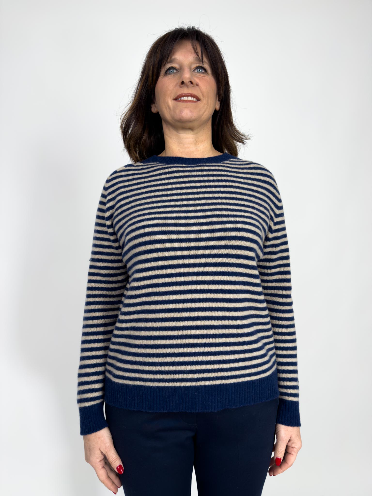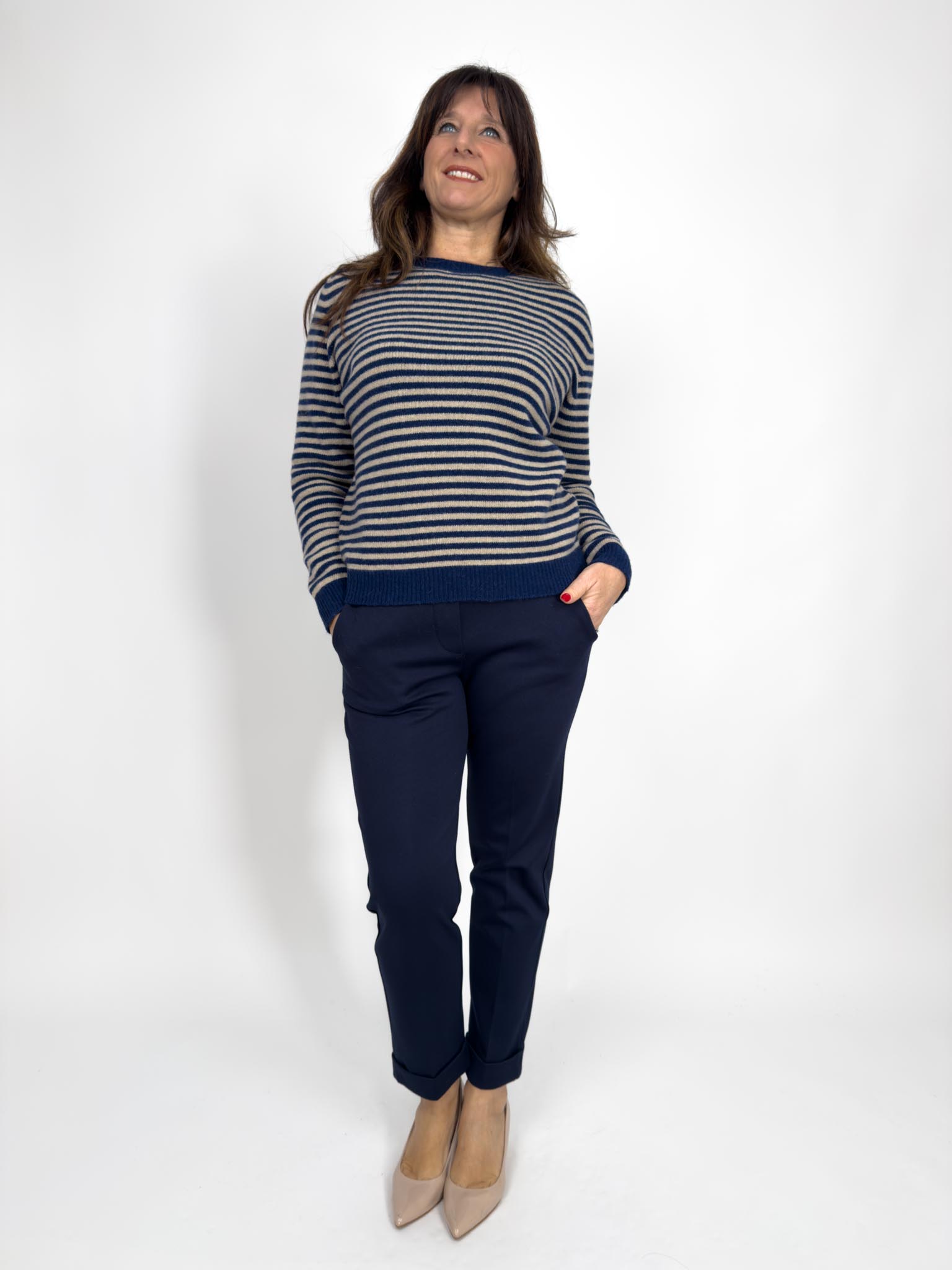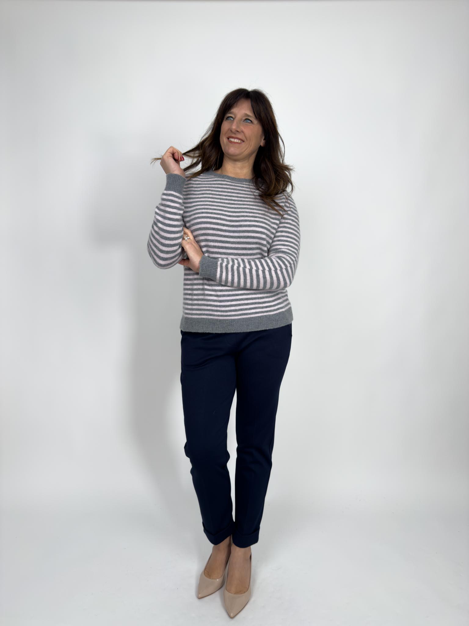 Maglia in lana Made in Italy, paricollo con linee orizzontali.