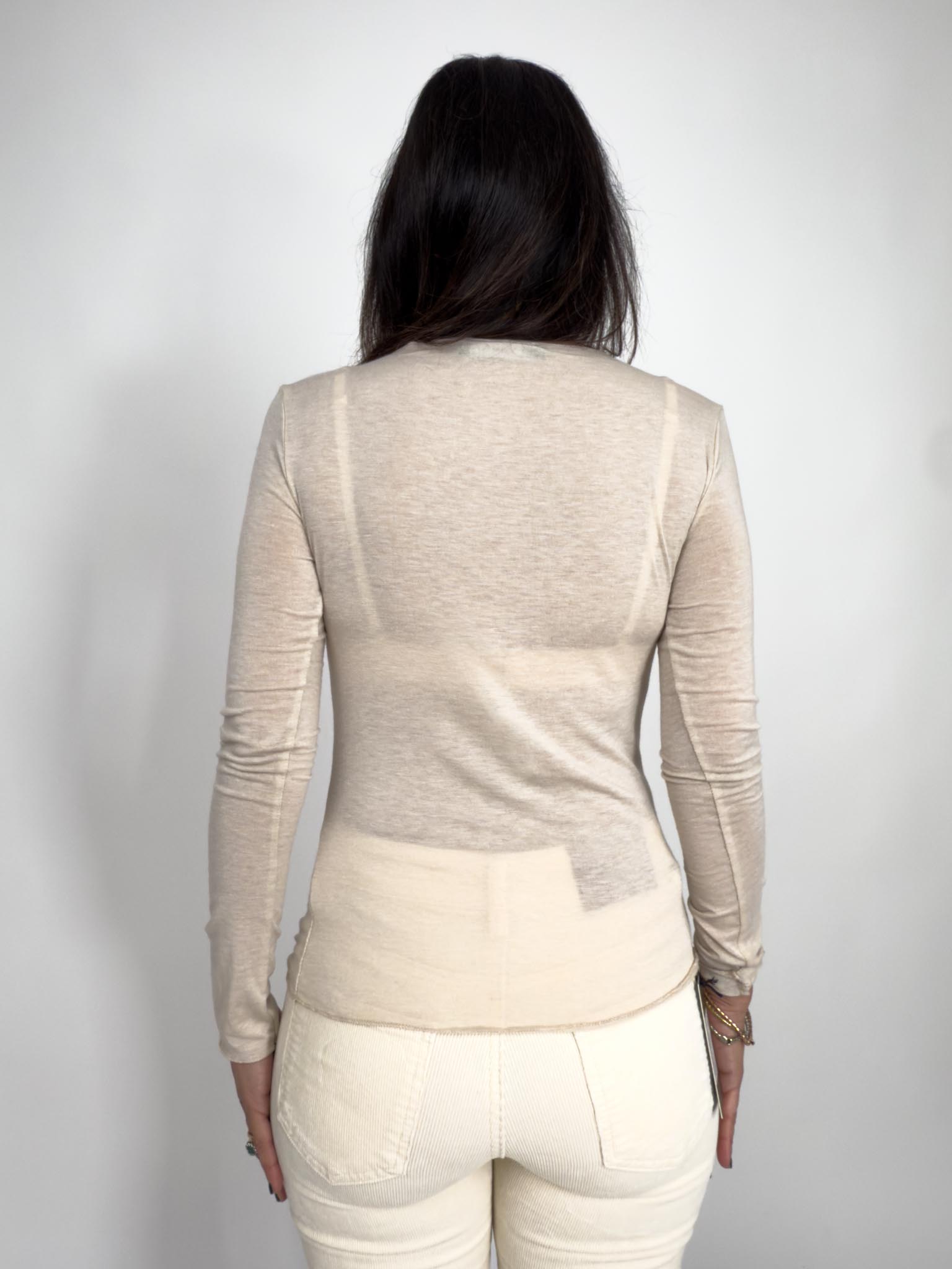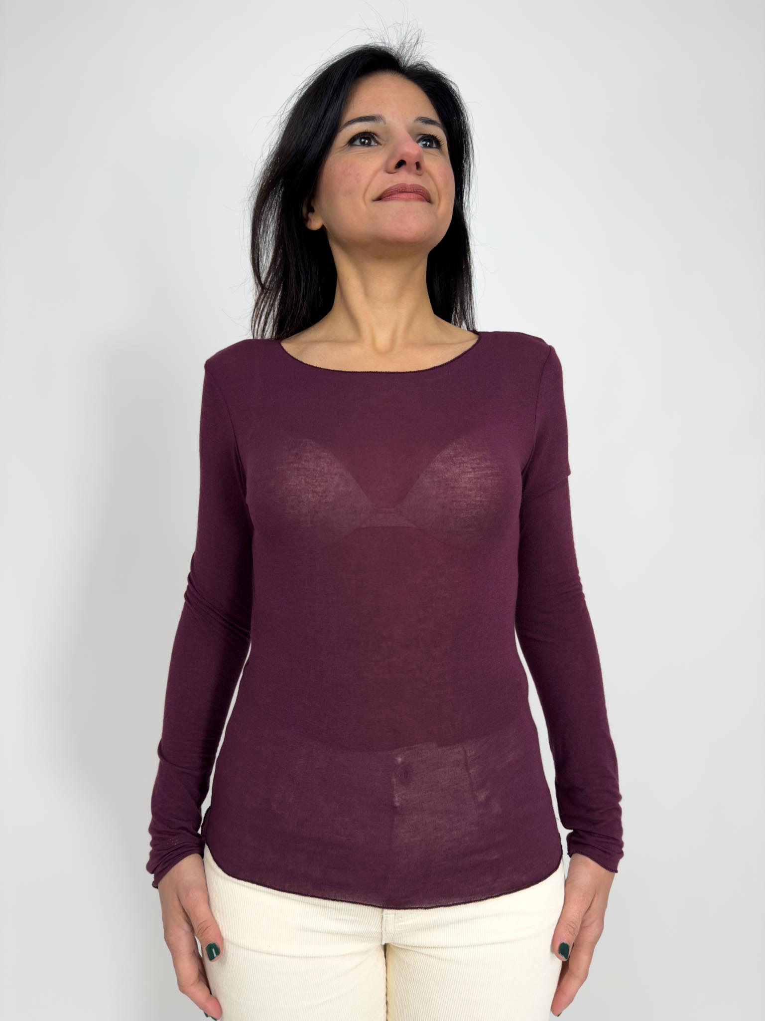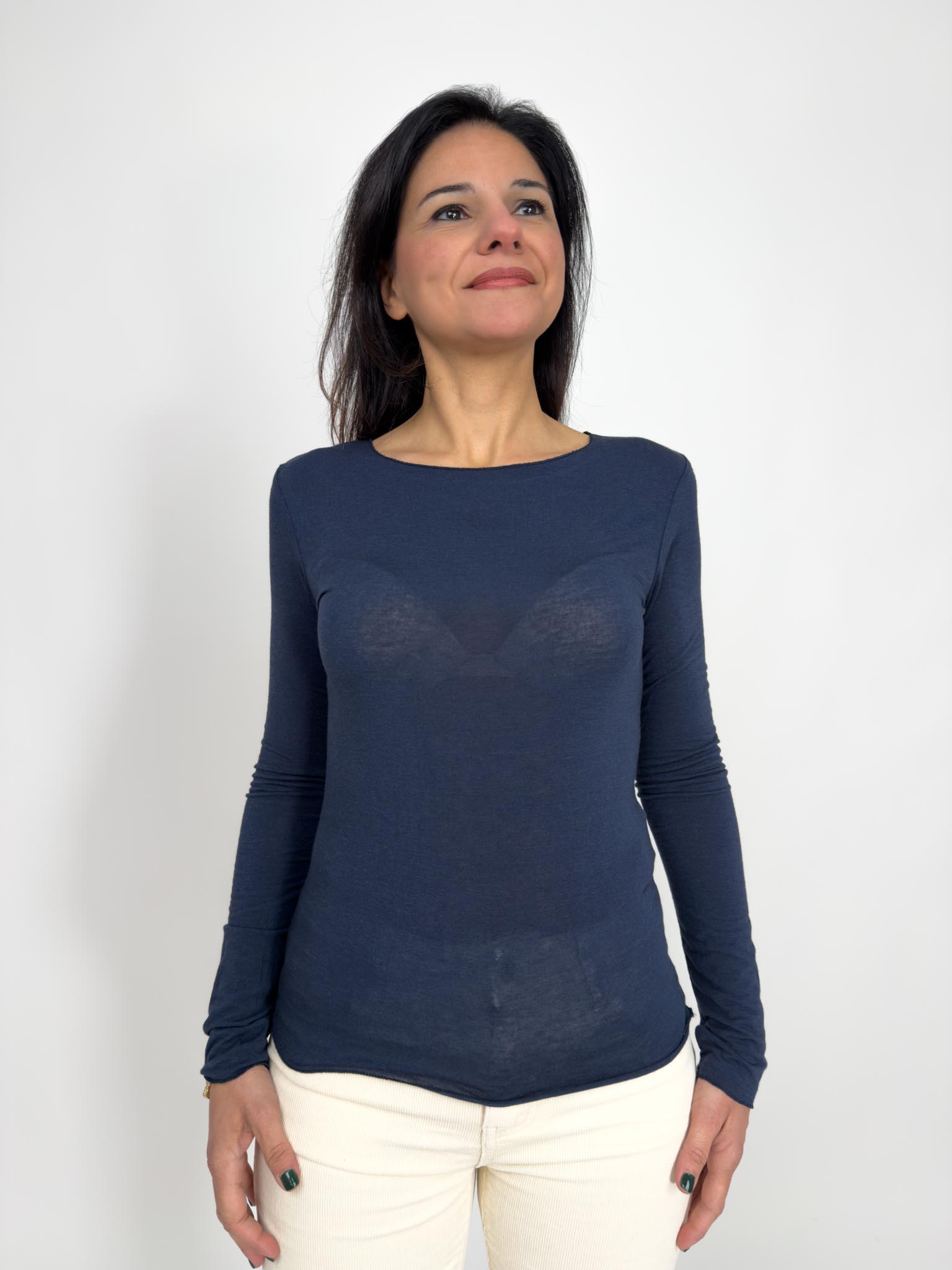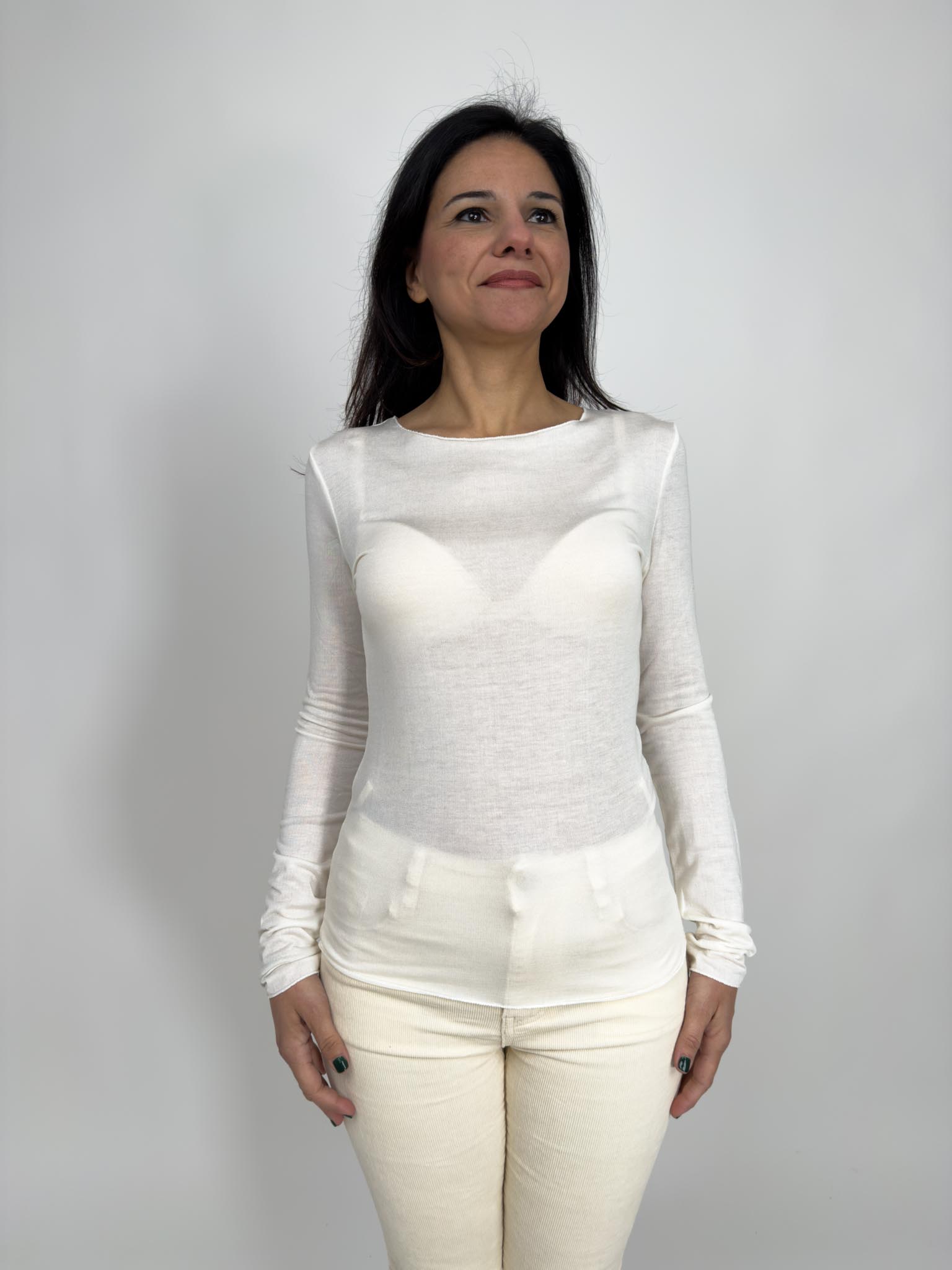 Sotto giacca aderente in misto cashmere, scollo barchetta.
