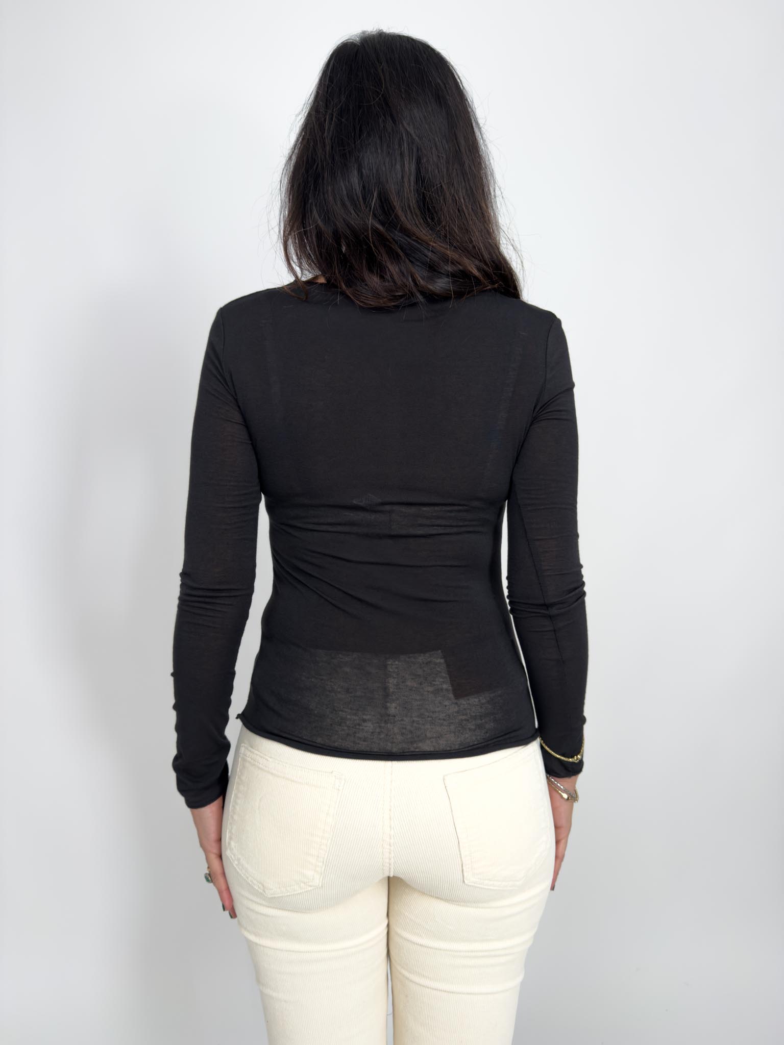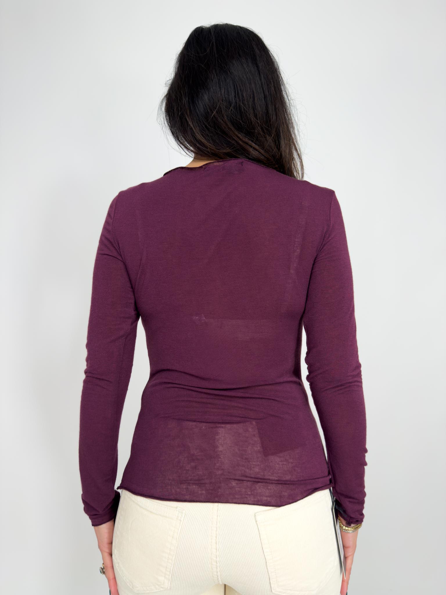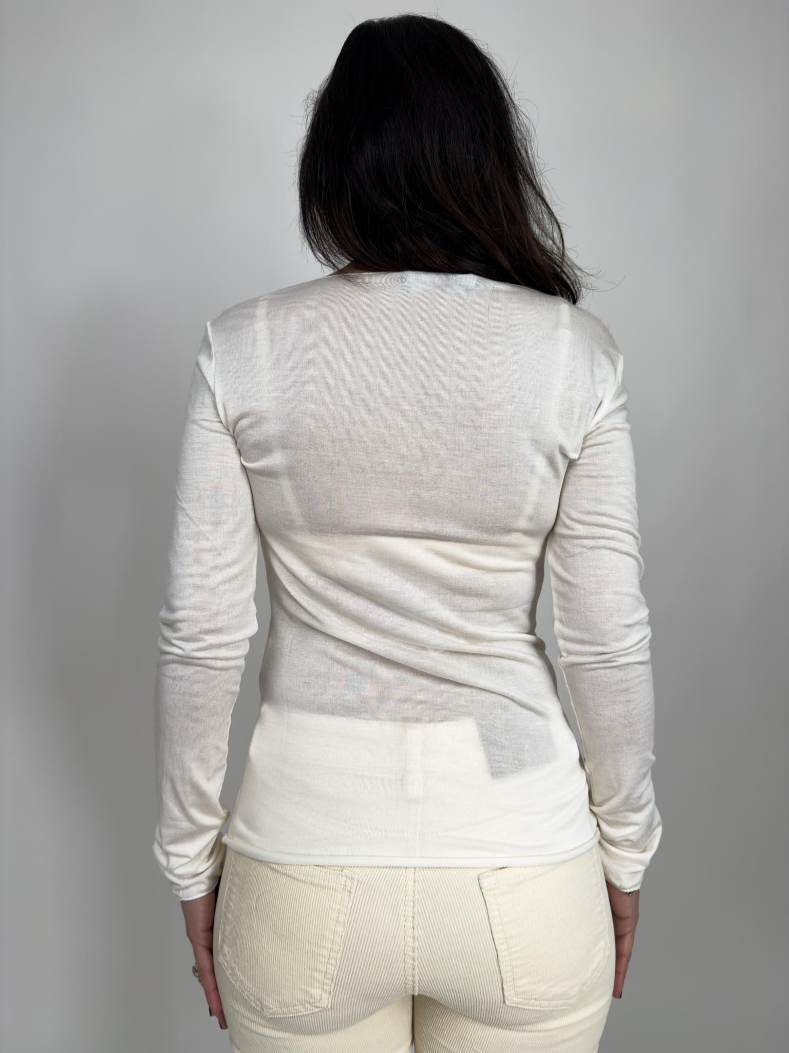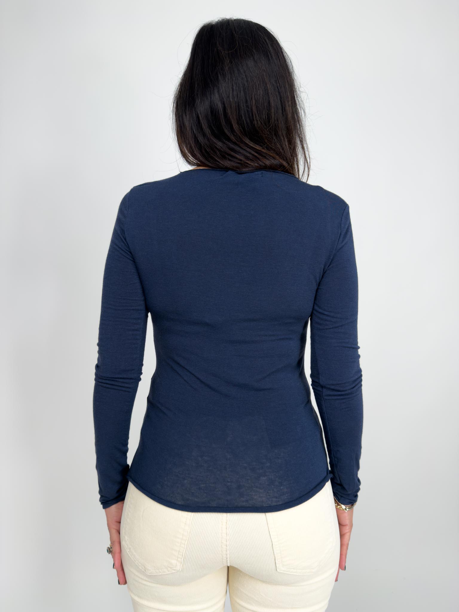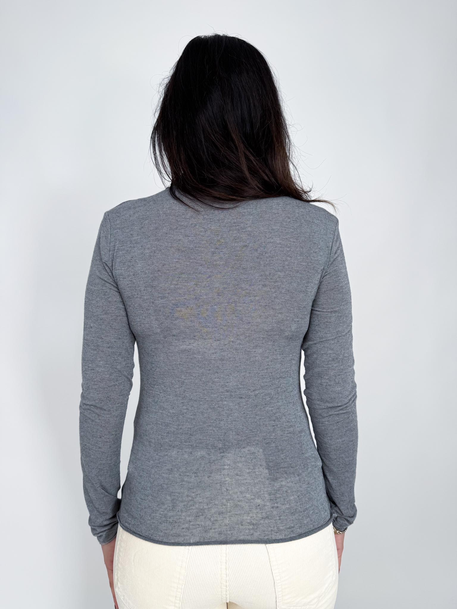Sotto giacca aderente in misto cashmere, scollo barchetta.